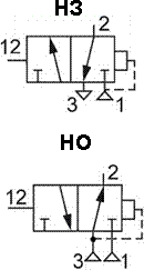 Исполнение | Трехлинейный двухпозиционный, с односторнним пневматическим управлением и пневматическим возвратом в исходное положение. Конструкция распределительного устройства: цилиндрический золотник |
