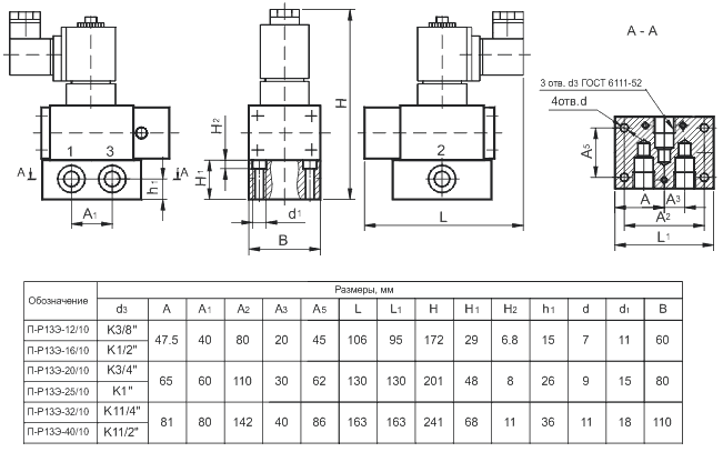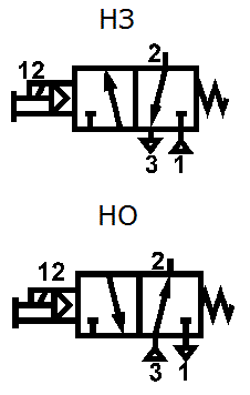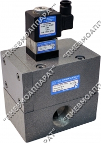 | Исполнение | Трехлинейный, двухпозиционный с односторонним электропневматическим управлением и ручным дублированием, пружинным возвратом в исходное положение. Конструкция распределительного устройства: клапанного типа |