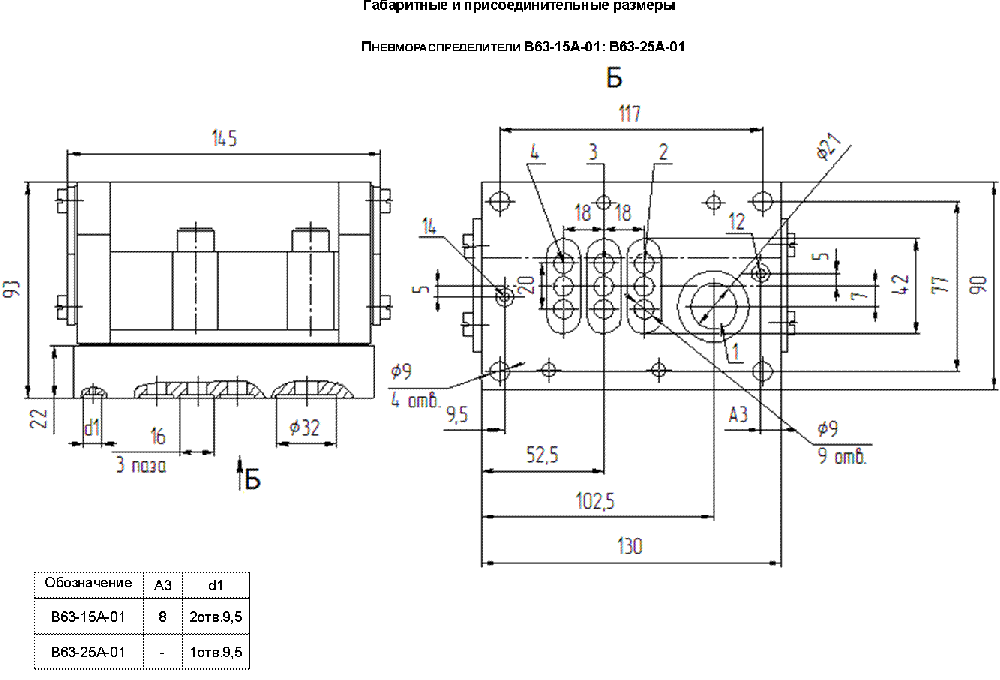 Исполнение | Четырехлинейный, двухпозиционный с двухсторонним пневматическим управлением. Конструкция распределительного устройства: плоский притёртый золотник |