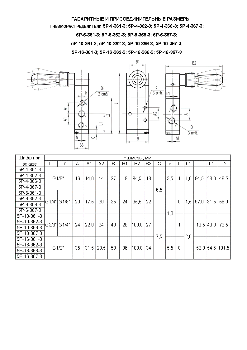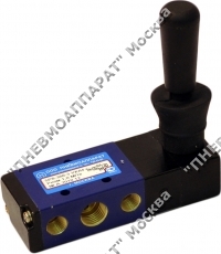 | Исполнение | Пятилинейный, трехпозиционный, с ручным управлением (рычаг), с фиксацией в трех положениях. В средней позиции золотника все линии перекрыты. Конструкция распеделительного устройства: цилиндрический золотник |