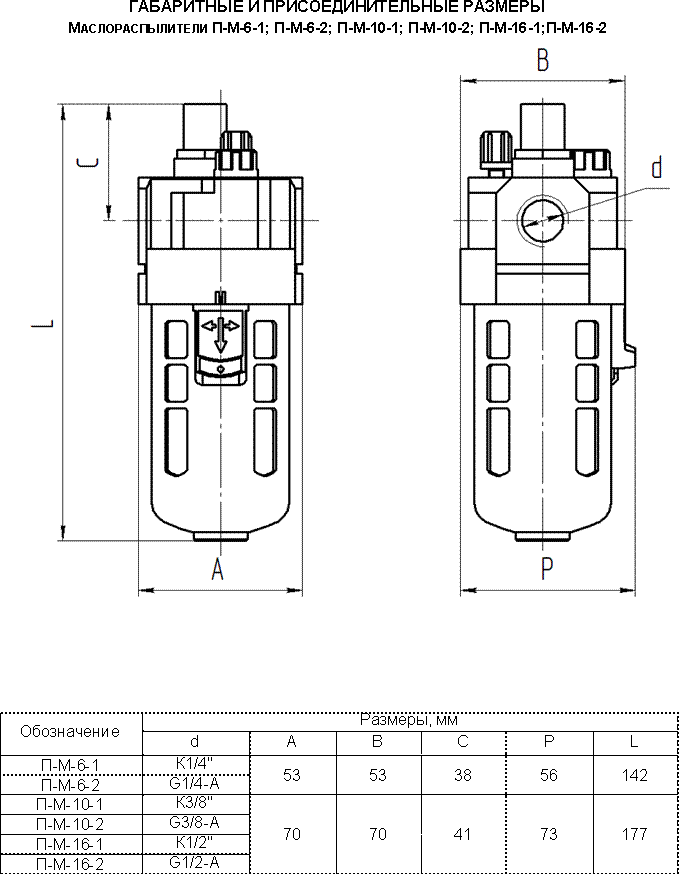 | Подача масла, капли/мин, при минимальном расходе воздуха, не менее | 2 |